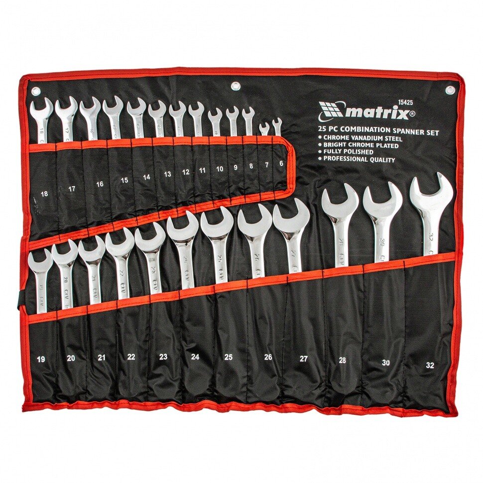 Ключи комбинированные (25 предметов / 6-32мм / CrV / полированный хром / Matrix)
