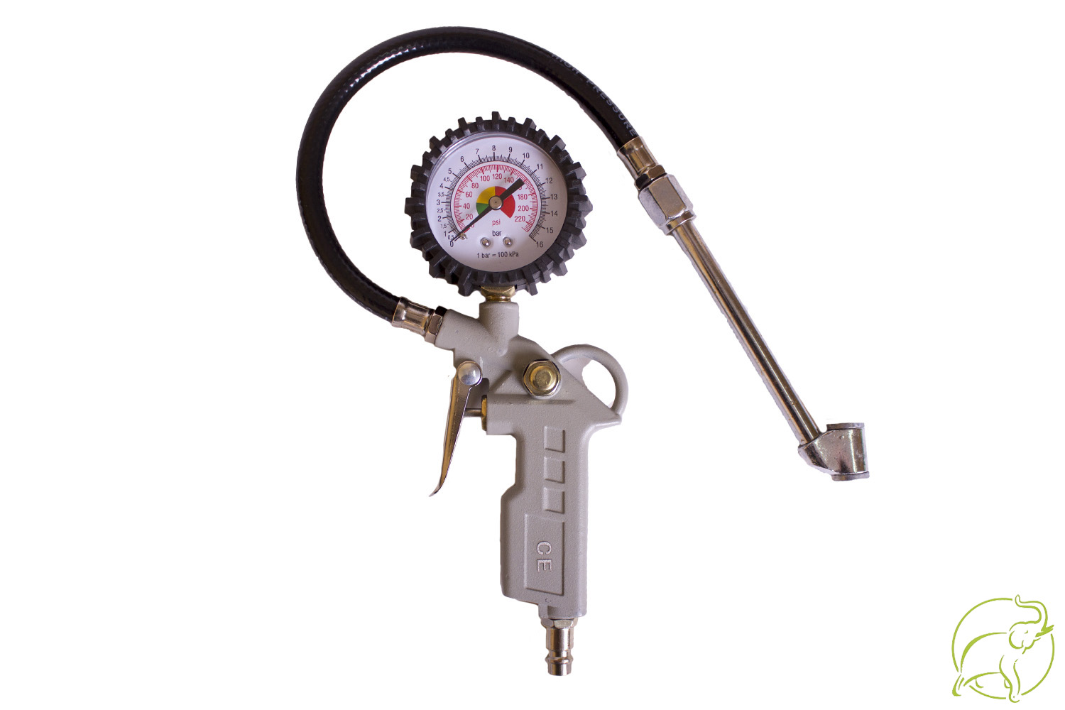 - Манометр высокой точности показывает давление до 16 атмосфер.