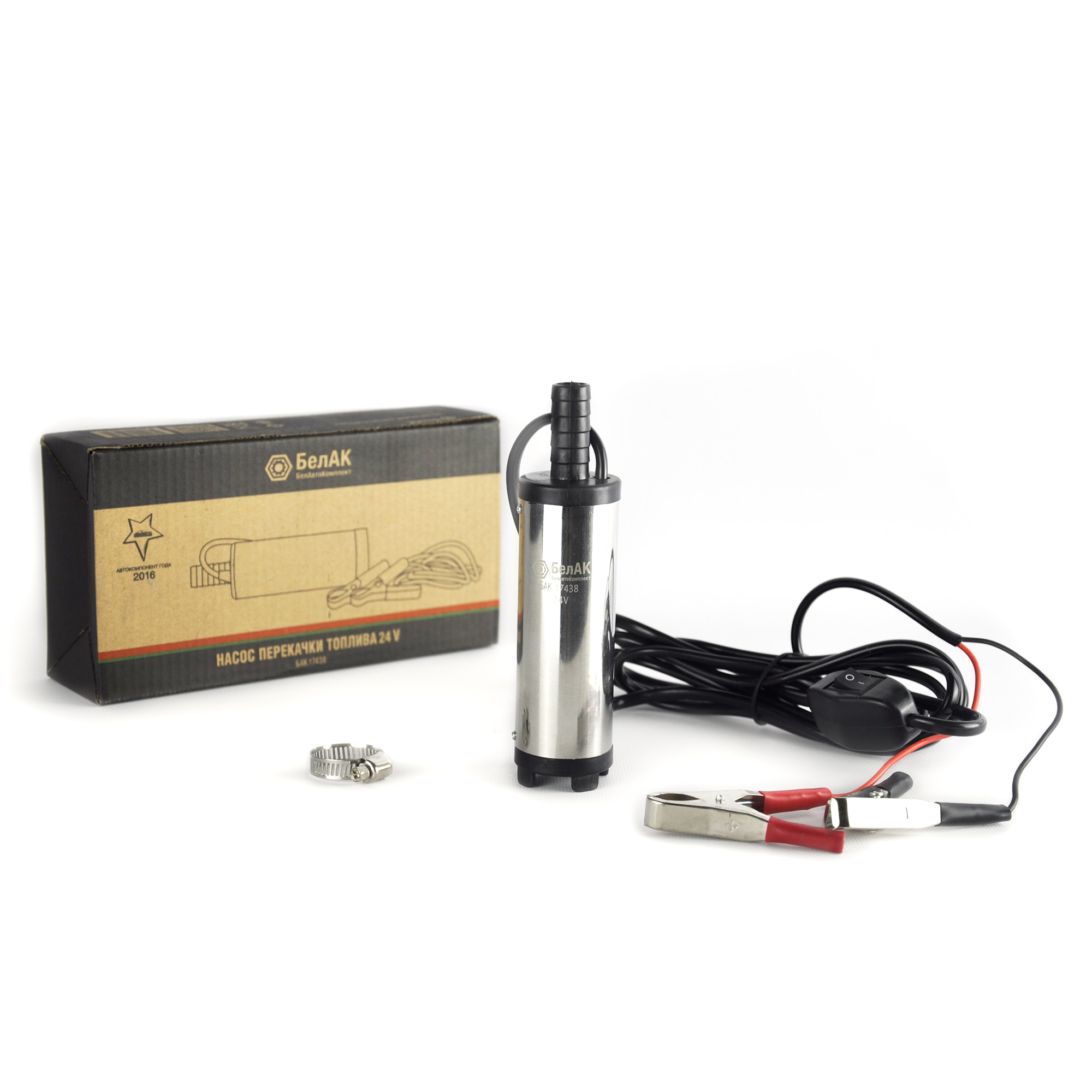 Насос перекачки жидкостей погружной 24V D38 с несъёмным фильтром "БелАК" разработан российским производителем «БелАК», награждённым девятью национальными премиями «Автокомпонент года» и «Автоаксессуар года». Отдельная премия «Автокомпонент года» присуждена в номинации «Насосы перекачки топлива». Продукция «БелАК» соответствуют нормам сертификации ISO9001 и ЕАС.